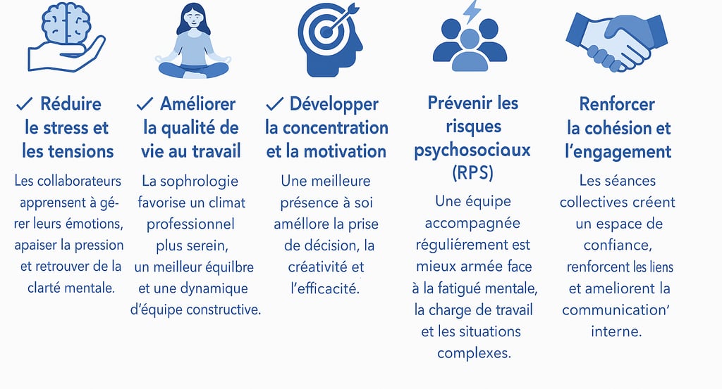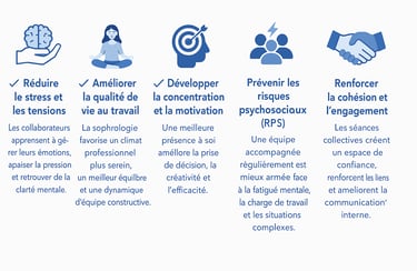 Séances de sophrologie pour réduire le stress au travail.